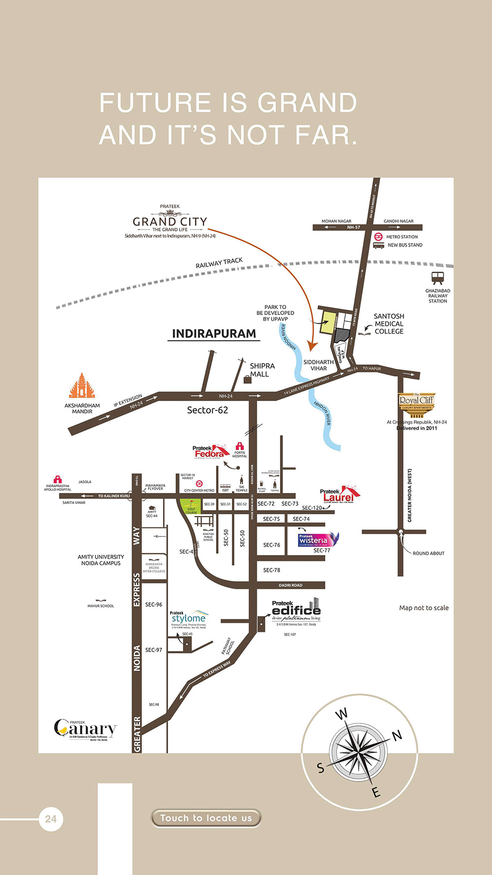 89.25 Lacs*The Prateek Grand City in Siddharth Vihar, Ghaziabad, is redefining luxury urban living with its Ready-to-Move-in residential projects under one Township. These two different residential projects, the Grand Carnesia, which comprises 2784 units approx within 15 exclusive towers, and the Grand Paeonia, which has 1724 units approx within 9 exclusive towers, are developed by Prateek Group. They have the finest location in Delhi NCR and touch the fertile edge of the river Hindon from the West. This township is surrounded by elite social infrastructure and supports an eco-friendly lifestyle in a low-density upper urban population. Being a world-class city of luxury homes, Prateek Grand City is the best for making luxury affordable with its acres of fertile land connected to the National Highway NH09 and NH24, the state-of-the-art National Expressway NE03, the Shaheed Asthal Metro Station, the Hindon Airport, the Ghaziabad Railway Junction, etc. This residential space is good with the goodness of green nature, smooth traffic, and proximity to famous shopping centers, malls, restaurants, hotels, hospitals, food cafes, Govt offices, international schools, colleges, etc.